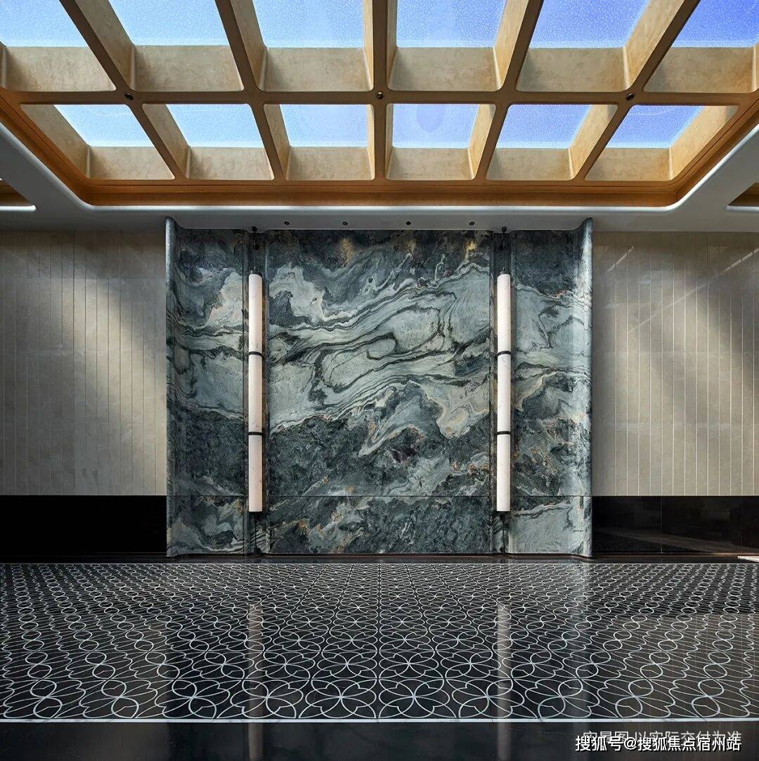 慕尼黑大理石,顶部特别运用了透光云石做了一个灯光设计——到了夜晚,灯光会穿透光云石洒向地面,光影交织间能营造出独特雅致的氛围。✅保利外滩序售楼处电话: