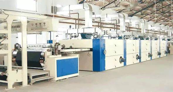 起泡的方法有很多,棉织物可以通过“碱缩”的方法在织物表面形成大量的泡状小隆起,也可以通过织物的组织结构和经纬密度设置,使成品织物表面形成小的菱形或珍珠状的小颗粒。起泡类织物与起绉类织物不同,在加工过程中不仅要注意尽可能地降低经向张力,还必须同时降低纬向拉力。经向张力的降低不仅包括织物的预缩、预定和染色阶段,还包括烘干阶段和成品定型阶段。